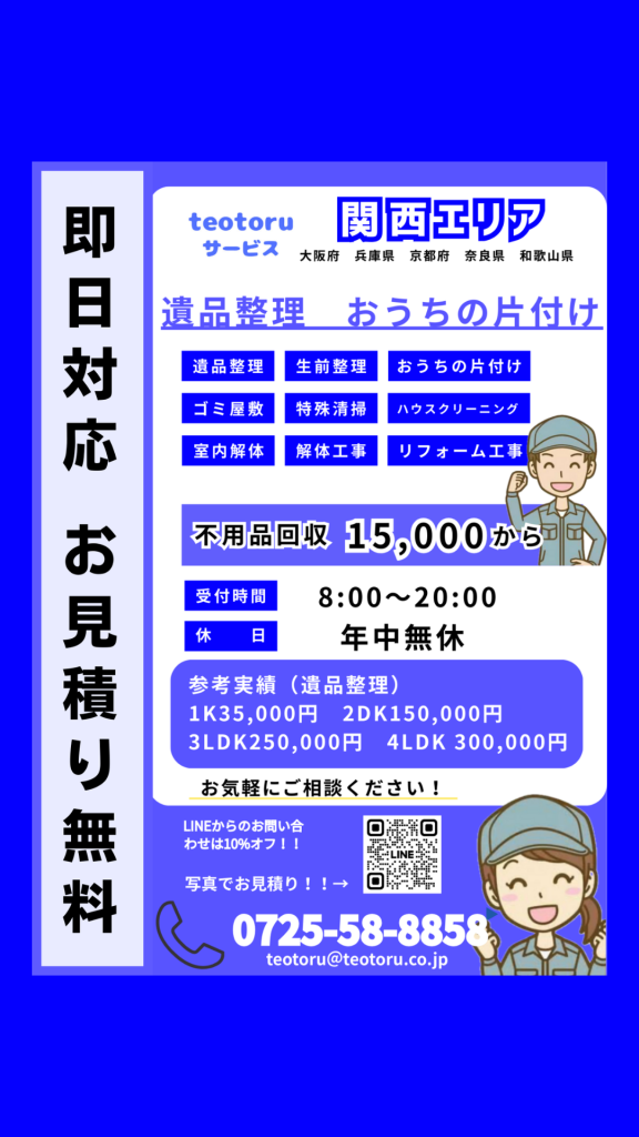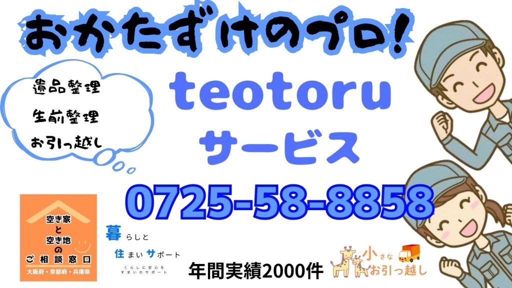 teotoru service(手を取るサービス)は、単に「荷物を捨てる・部屋を綺麗にする」だけのサービスではありません。お客様が抱える不安やためらいに寄り添い、新しい生活へ向けて「一緒に手を取り合って」一歩を踏み出すためのパートナーです。