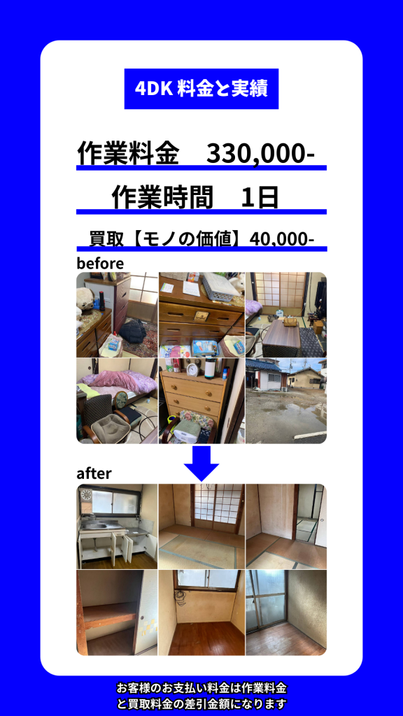 - 不用品回収・ゴミ屋敷清掃: どんな状態のお部屋でも、私たちは決して否定しません。これからの新しい生活のために、迅速・清潔にリセットいたします。
