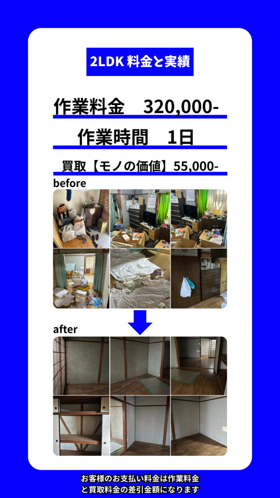 - 絶対に否定しません、責めません 現状のお部屋の状態を見て、私たちが驚いたり、お客様を批判したりすることは一切ありません。プライバシーを厳守し、安心してお任せいただける環境をお約束します。